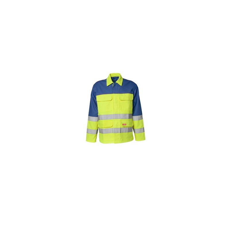 Frontverschluss mit Annähknöpfen, 2 Brusttaschen mit Patten, 2 vordere Eingrifftaschen mit Patten, je 2 Reflexstreifen um den Bauch und den Ärmeln. Reflexband: 3M™ Scotchlite™ Reflexgewebe 8935 silber.