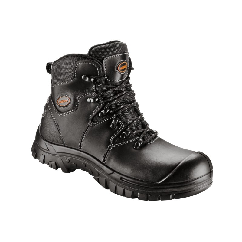 Hydrophobiertes Glattleder mit PU-Überkappe. 100% wasserdicht. Futter: ruNNex® AIRSTREAM Funktionsfutter und HydroGuard-Membran. Sohle: PU/PU-Sohle mit ruNNex® PU-Zwischensohle, öl- und benzinresistent, hitzebeständig bis ca. 130° C, antistatisch, schnittfest. Fußbett: ganz-flächige Einlegesohle. Plus: Stahlkappe, Stahleinlage, Weite 11, Form B.