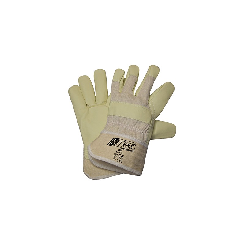 Mit naturellem Drellrücken und Segeltuchstulpe, Knöchelschutz, feuchtigkeitsabweisend in der Innenhand, Innenhandfutter.