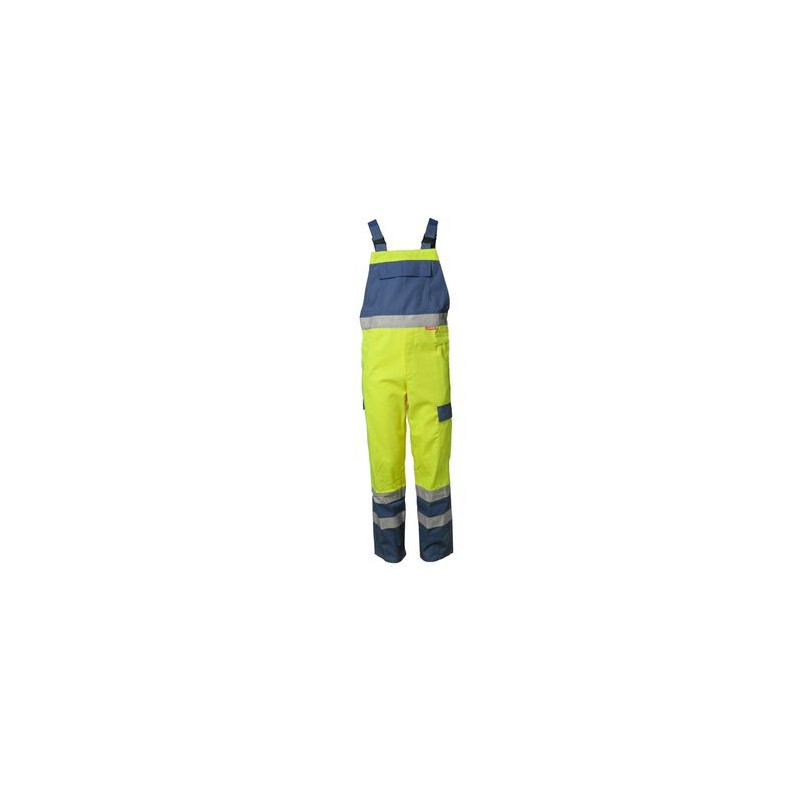 So komfortabel kann Sicherheit sein. Bundweitenverstellung durch Annähknöpfe, Hosenschlitz mit Annähknöpfen, 2 Sicherheitsschnallen an den Trägern, elastischer Rückenteil, Latztasche mit Patte, 1 Oberschenkeltasche mit Patte links, 2 Gesäßtaschen mit Patten, 1 senkrechte vordere Eingrifftasche, 1 Reflexstreifen am Bund, je 2 Reflexstreifen um das Bein. Reflexband: 3M™ Scotchlite™ Reflexgewebe 8935 silber.