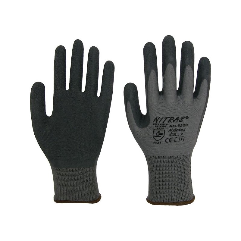 Nylonhandschuhe mit schwarzer Latexbeschichtung auf Innenhand und Fingerkuppen
