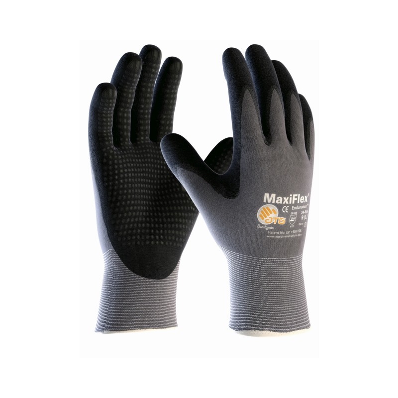 Nylon-Strickhandschuhe mit atmungsaktiver, ultraldünner, patentierter Micro-Nitrilschaum-Beschichtung mit Nitril-Noppen für optimale Flexibilität und sicheren Griff, Handrücken und Fingeroberseite frei, Stretchausführung für optimale Passform, keine Penetration zur Innenseite des Handschuhs die Reizung oder Wärmestau verursachen kann, Öko-Behandlung, völlig frei von Lösungsmitteln. Flusenfrei und nicht markierend, ohne Silikon, zugelassen für die Handhabung von Lebensmitteln, [Grad 8 erreicht (erstklassige Leistungsstufe) für Penetrationsfestigkeit gegen Wasser (AATCC Test Method 193-2004) und gegen Öl (AATCC Test Method 118-2002).