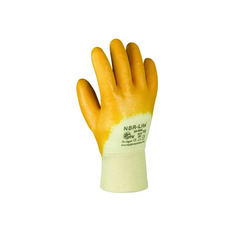 Nitril-Handschuhe, gelb, Strickbund, Handrücken frei.