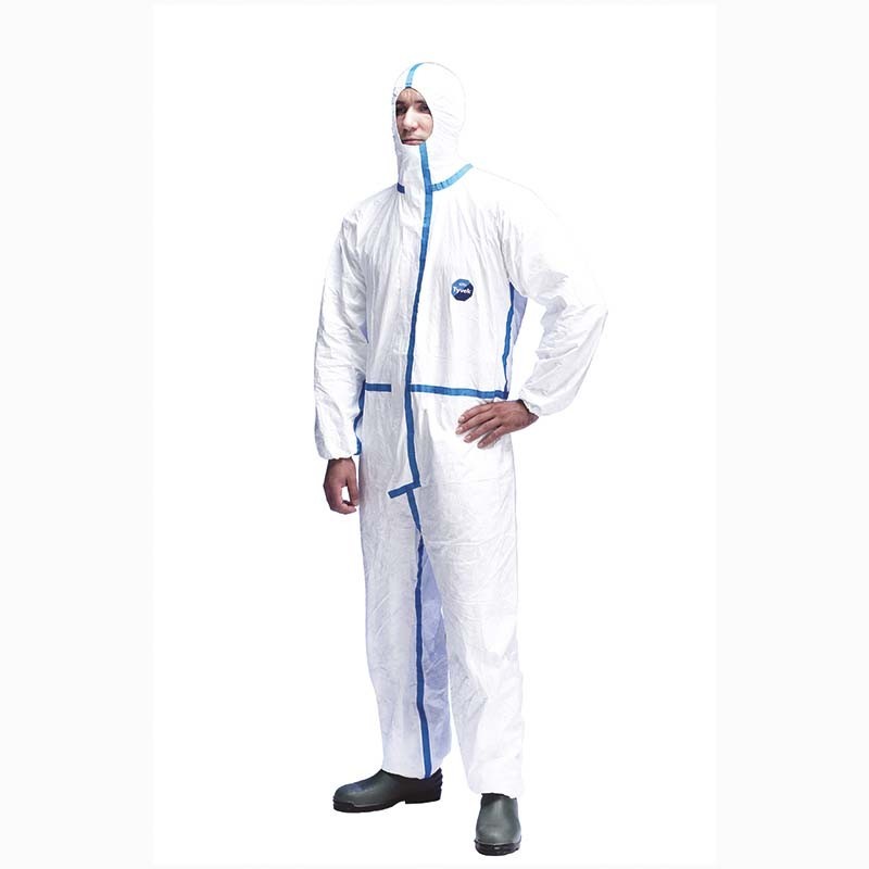 Tyvek® Classic Plus Schutzoverall, Material ist abweisend gegenüber wasserbasierenden Flüssigkeiten und Sprühnebel, sprühdicht gem. EN 14605, partikeldicht gem. EN 13982-1, begrenzt spritzdicht gem. EN 13034, Kontaminationsschutz gegen radioaktive Partikel gem. EN 1073-2, Blut- und virendicht gem. EN 14126, antistatisch gem. EN 1149-5, Hohe Atmungsaktivität durch Luft- und Wasserdampfdurchlässigkeit, hohe Barriere gegen feine Partikel und Faser, Schutzanzug ist fusselarm, von beiden Seiten antistatisch ausgerüstet und frei von Silikonen, gesteppte und heiß überklebte Nähte bieten identische Barriereleistung wie das Anzugmaterial, kombiniert Typ 4 Schutz mir dem Komfort eines Schutzanzugs aus Vliesmaterial, Kapuzenform und Gummizug um die Kapuze ermöglichen optimalen Sitz in Verbindung mit einer Atemschutzmaske, Dichter Maskenabschluss, Tyvek®-Reißverschluss mit selbstklebender Abdeckung, Gummizug an Arm- und Beinabschlüssen, eingeklebter Gummizug in der Taille, Daumenschlaufen.
