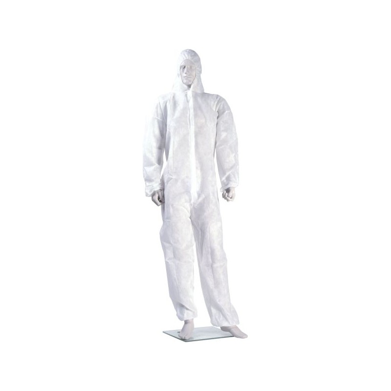 PP-Overall mit Kapuze, 40 g/m², Rückengummizug, verdeckte Reißverschlussleiste