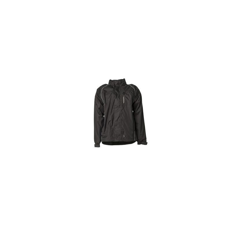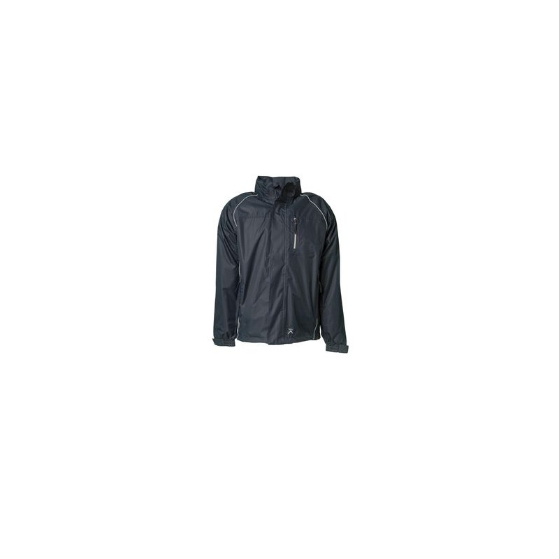 Atmungsaktiv, wasserdicht, Nähte hinterklebt. 2 seitliche Taschen mit verdecktem Reißverschluss, 1 Brusttasche mit Reißverschluss, Reflexbiesen als Applikationen, 1 Innentasche, 1 Handytasche, einrollbare Kapuze im Kragen, verstellbare Ärmelbündchen mit Gummizug, Kordelzug im Saum