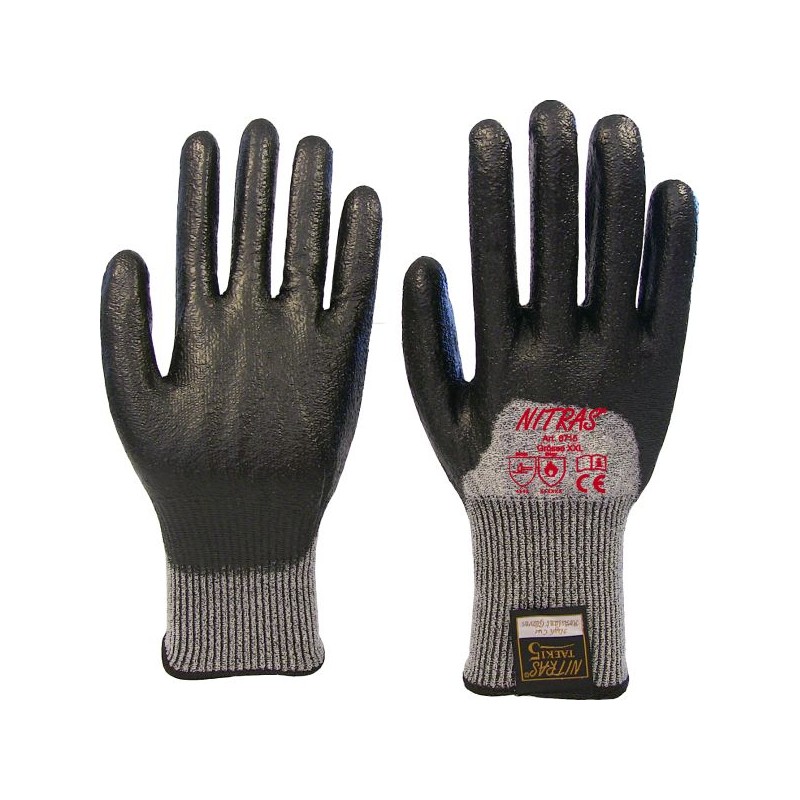 Spezialfaser-Strickhandschuhe, schwarze Nitril-Beschichtung auf Innenhand und 3/4 Handrücken, Strickbund