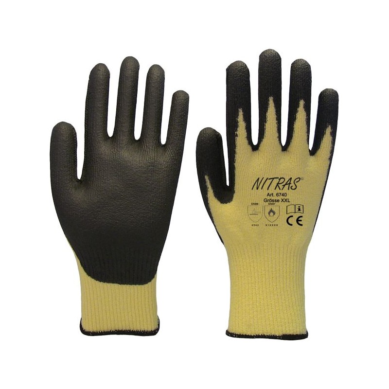 Zertifizierungen: EN 388 Cat. 2 / EN 407, Schnittschutzstufe 5 + hitzebeständig