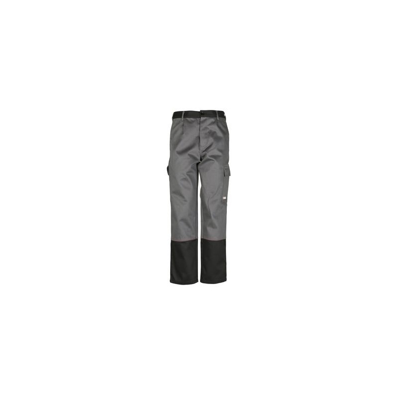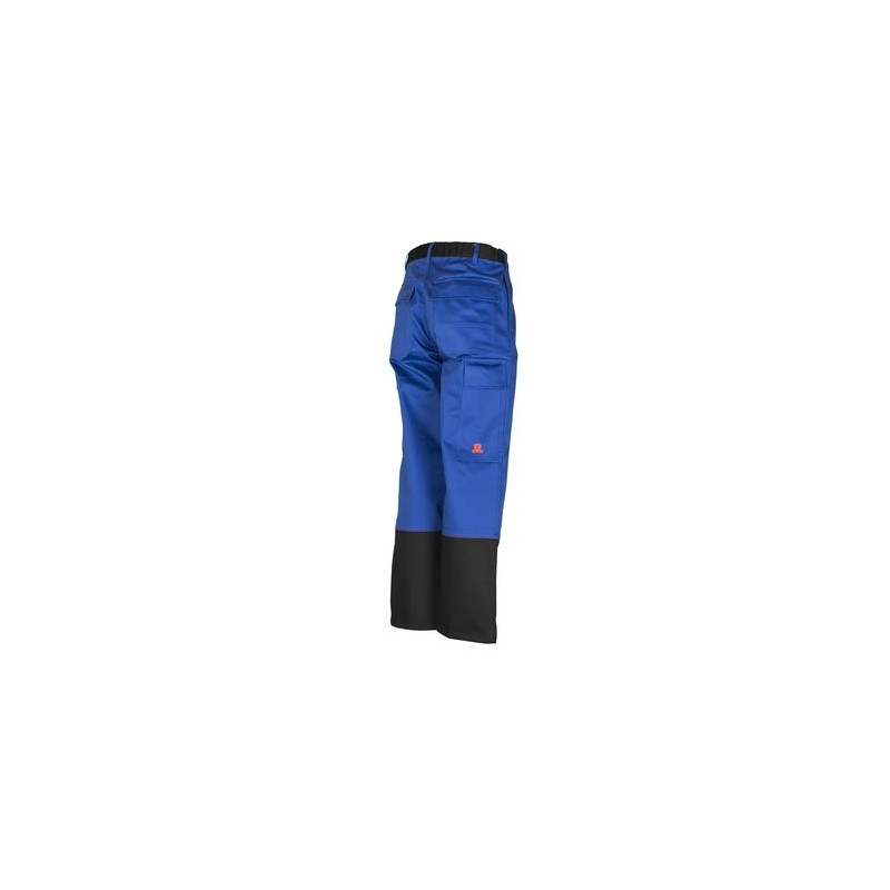 Bund und Hosenschlitz mit Annähknöpfen zu verschließen, Bund mit 7 Gürtelschlaufen, Gummizug im Bund, 2 senkrechte vordere Eingrifftaschen mit Druckknopf, 1 Oberschenkeltasche mit Patte links, 1 Maßstabtasche mit Patte rechts, 2 Gesäßtaschen mit Patten.