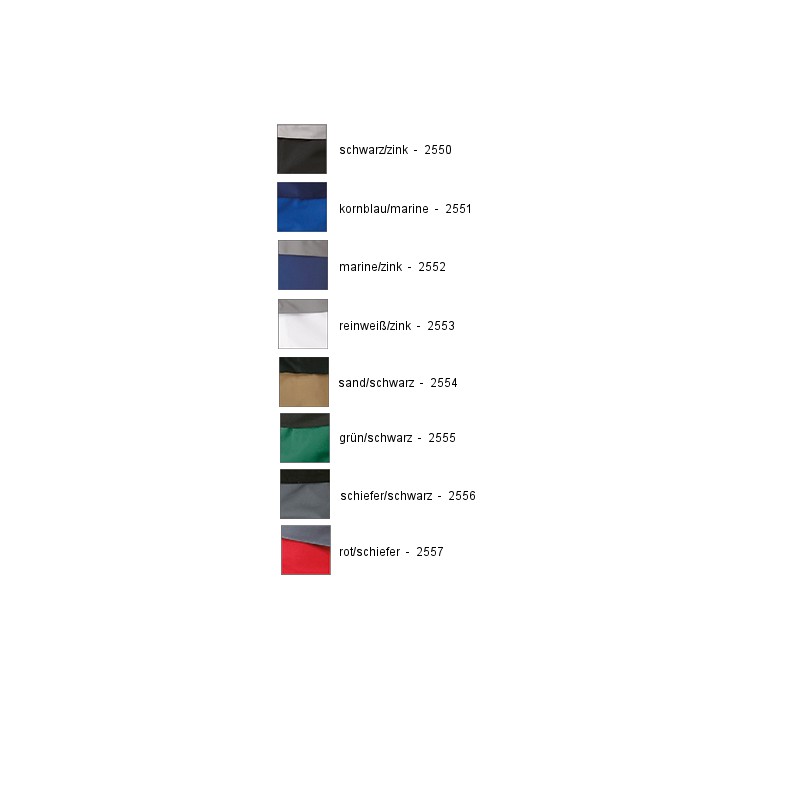 Material: 65 % Polyester, 35 % Baumwolle, Canvas-Bindung ca. 280 g/m², atmungsaktiv, strapazierfähig