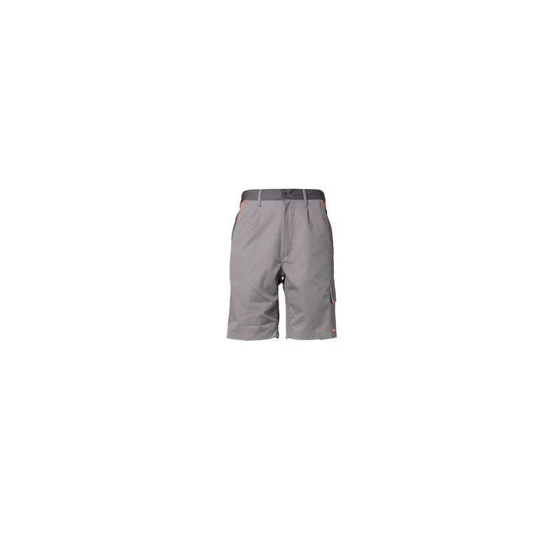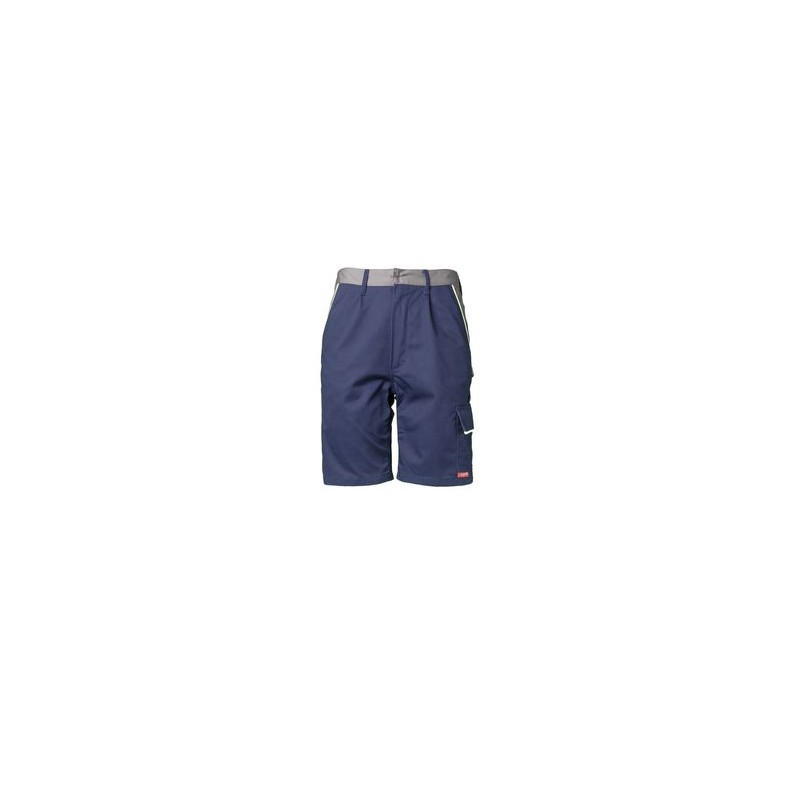 2 eingesetzte Beuteltaschen, doppelte Maßstabtasche, links Oberschenkeltasche mit Patte und Klettverschluss, Handytasche, Gummizug im Bund, 2 Gesäßtaschen mit Patten, Reißverschluss im Hosenschlitz, Tascheneingriffe und Taschenpatten mit farblichen Biesen abgesetzt