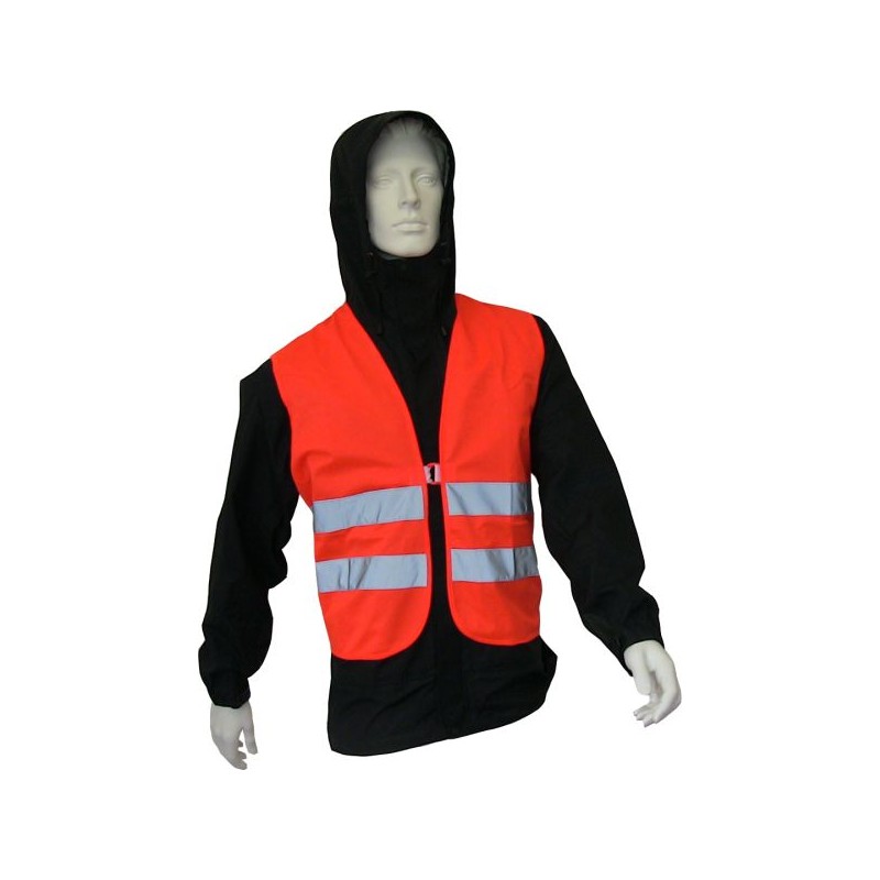 100 % Polyester mit zwei Reflexstreifen und Klettverschluß.